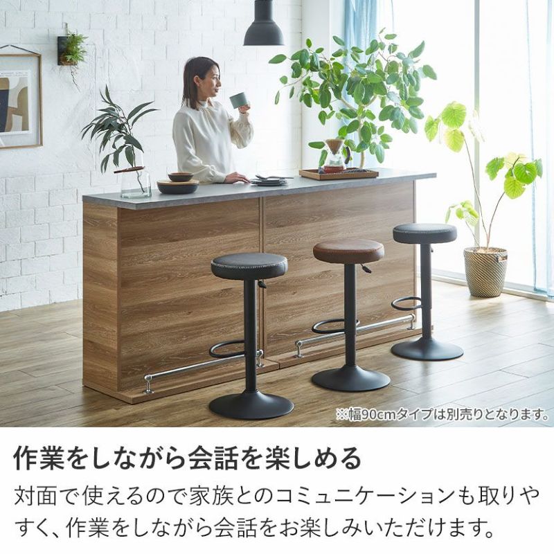 ●本体下部に足置きが付いていおり、カウンターチェアと合わせた際に安定した状態でお座りいただけます。