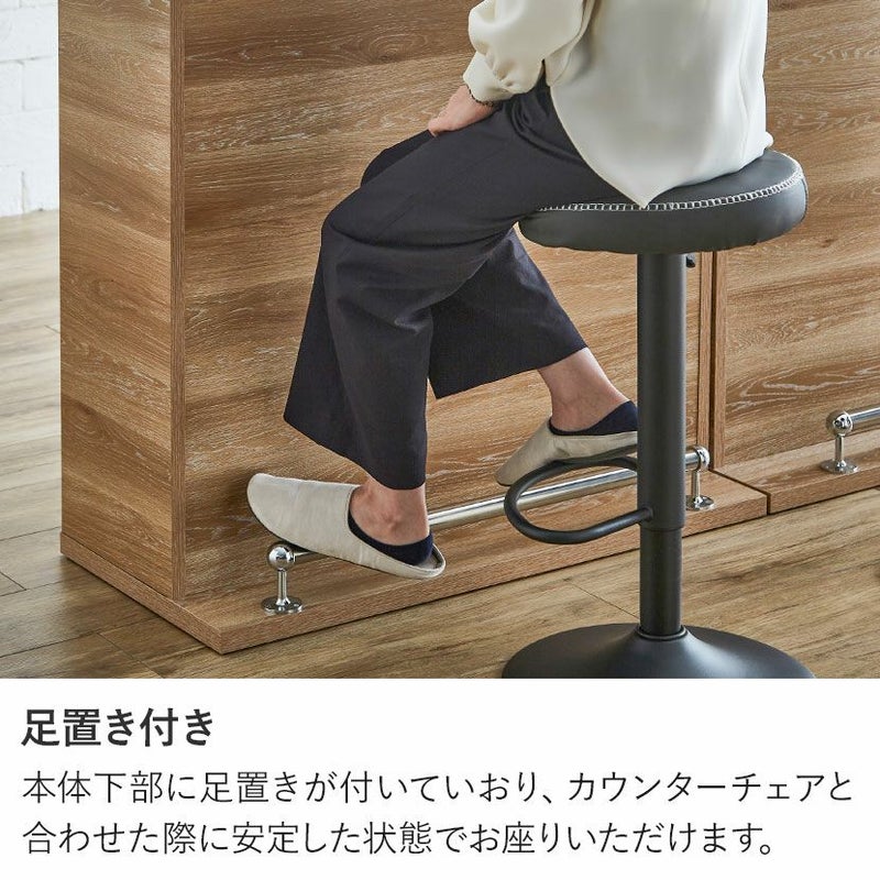 ●本体下部に足置きが付いていおり、カウンターチェアと合わせた際に安定した状態でお座りいただけます。