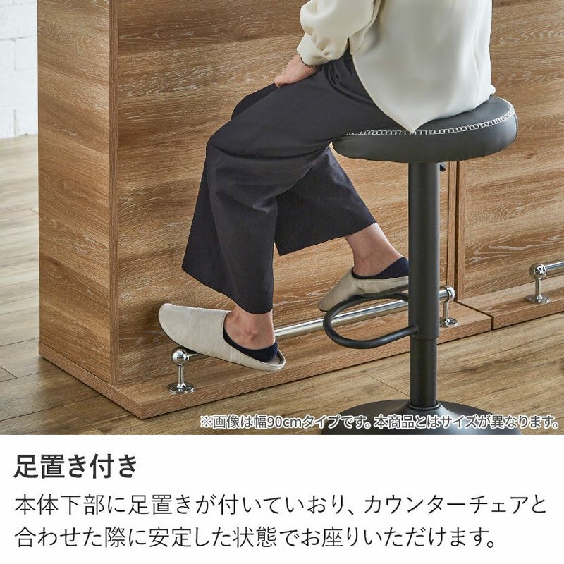 ●本体下部に足置きが付いていおり、カウンターチェアと合わせた際に安定した状態でお座りいただけます。