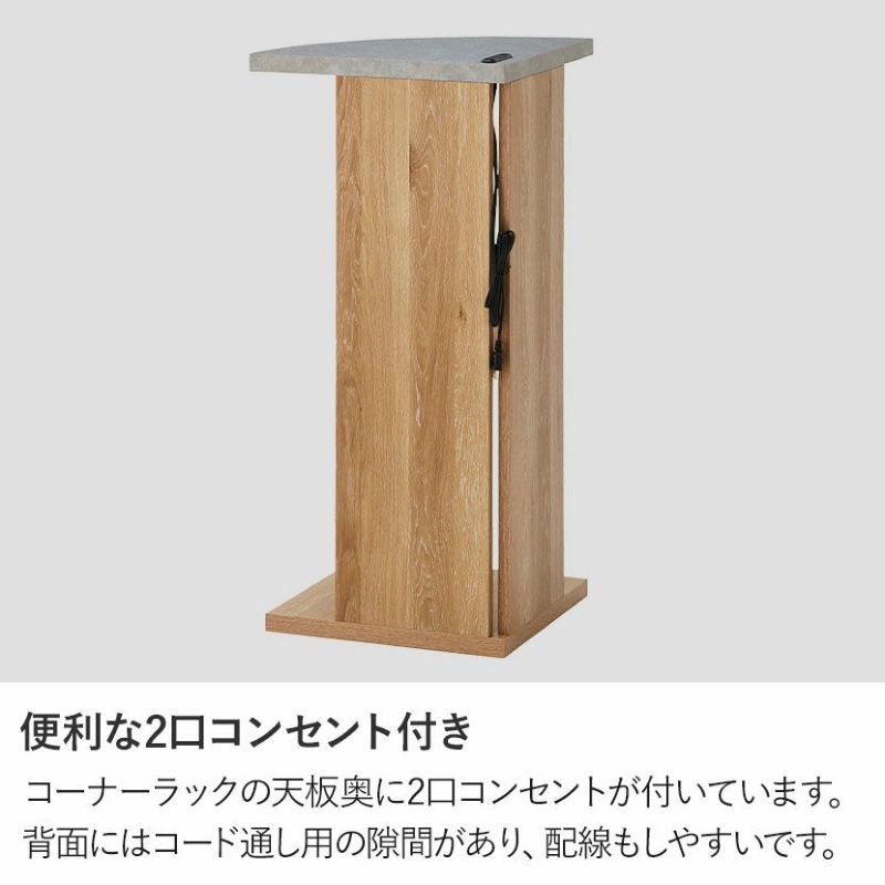 ●コーナーラックの天板奥に2口コンセントが付いているので、電源が必要な調理器具などの使用が可能です。