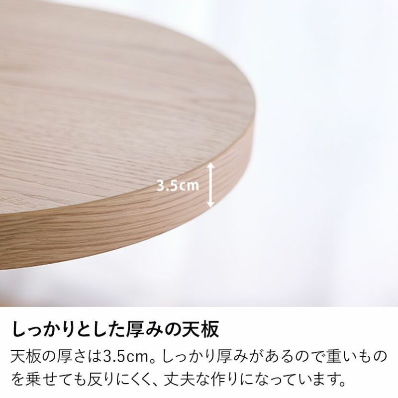 天板の厚さは3.5cm。しっかり厚みがあるので重いものを乗せても反りにくく、丈夫な作りになっています。
