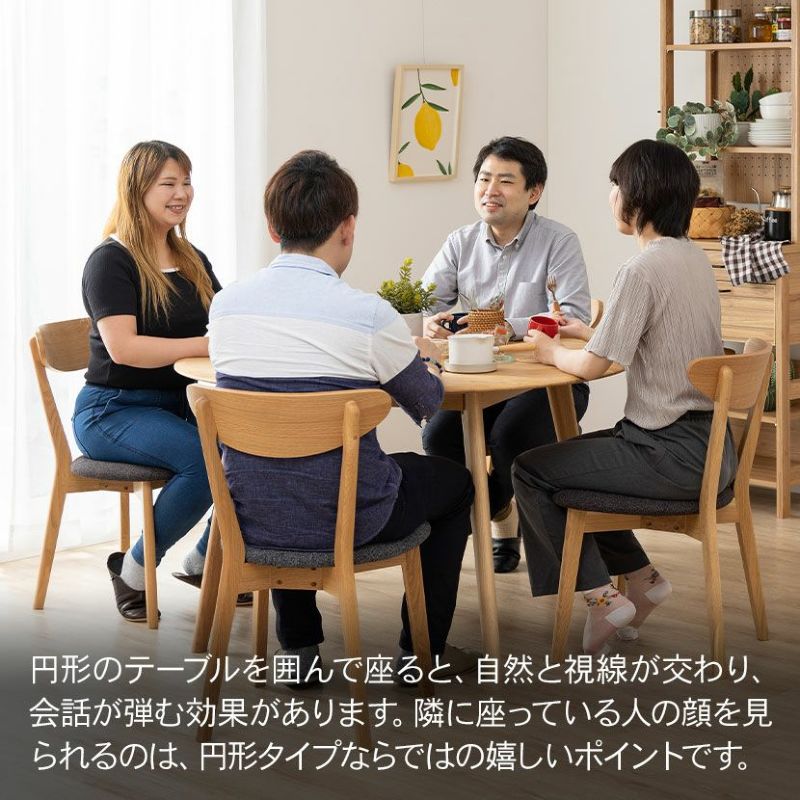 円形のテーブルを囲んで座ると、自然と視線が交わり、会話が弾む効果があります。