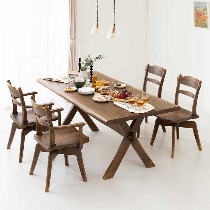 ●オーク材特有の木目を活かした天板は、ダイニングで十分な存在感を放ちます。