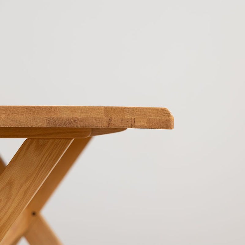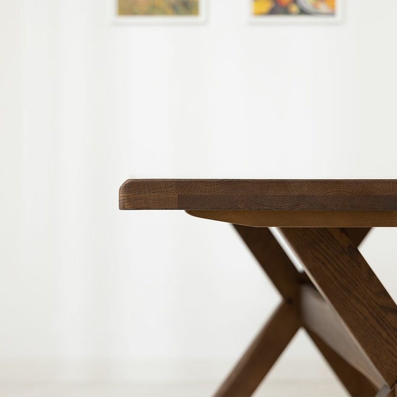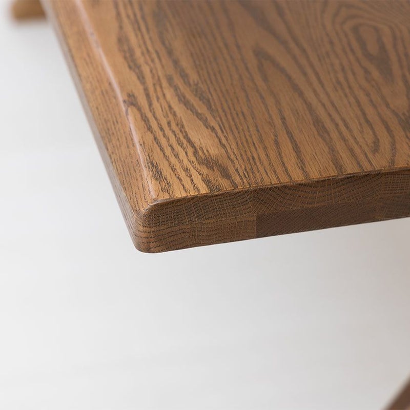 ●ボリュームのあるKIOLIテーブルは、複層天板構造で天厚40mmもあります。木の特性を熟知し、高度な接着技術があってできる技です。