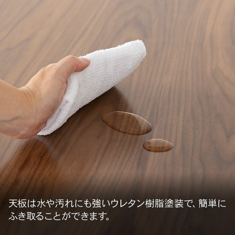 天板は水や汚れにも強いウレタン樹脂塗装で、簡単にふき取ることができます。
