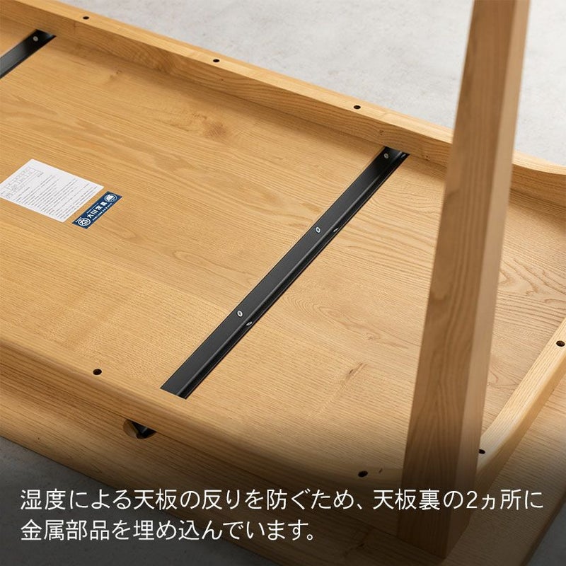 ●湿度による天板の反りを防ぐため、天板裏の2ヵ所に金属部品を埋め込んでいます。