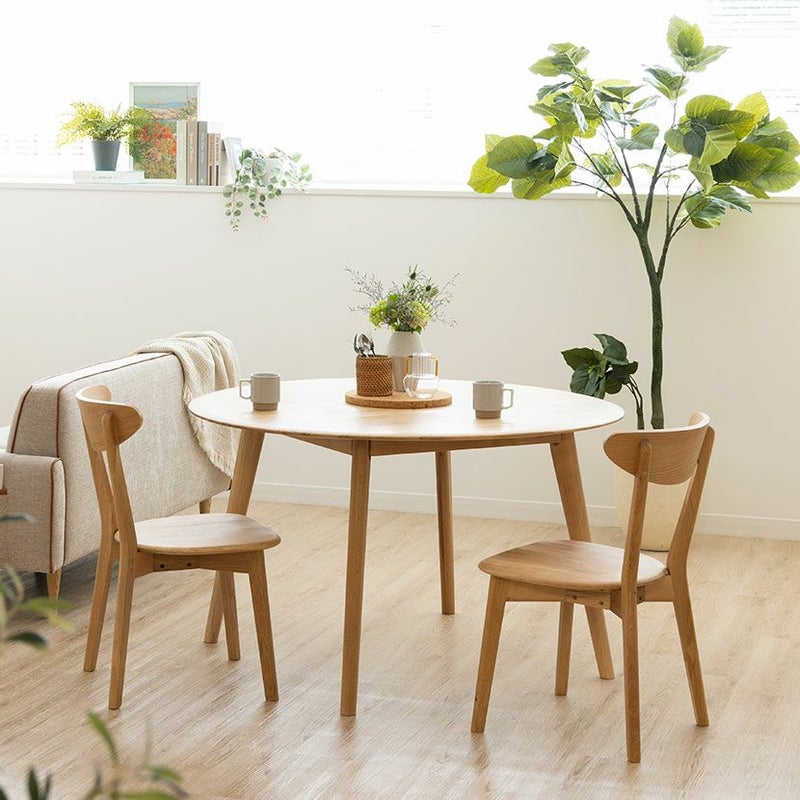 ホワイトオークをふんだんに使用した、円形のダイニングテーブル。