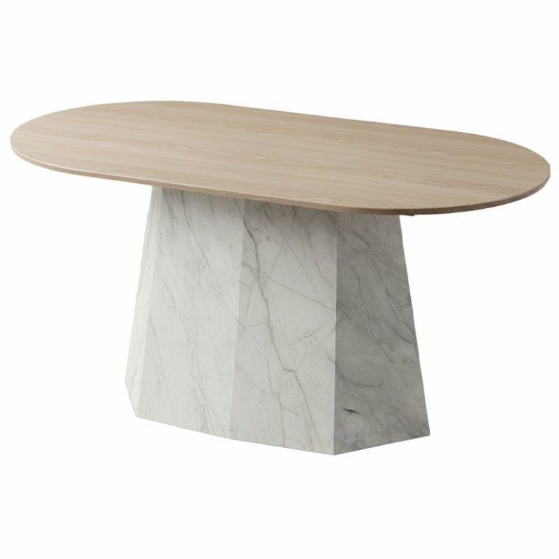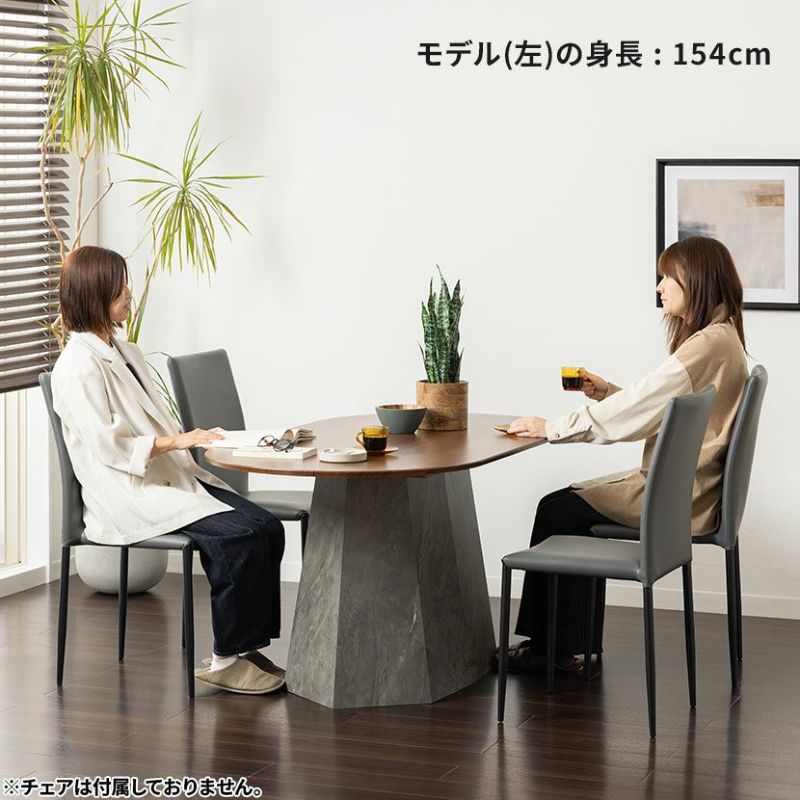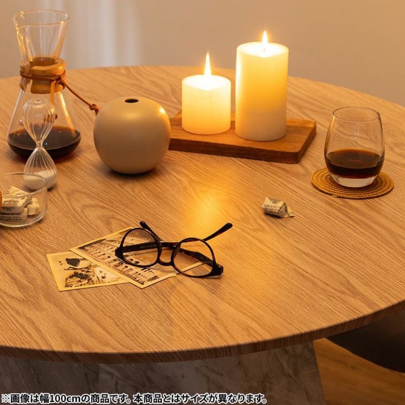 温かみのある木目調の天板と、重厚感のある大理石調の脚を組み合わせました。
