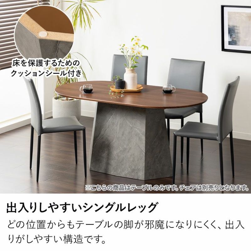 どの位置からもテーブルの脚が邪魔になりにくく、出入りがしやすい構造です。
