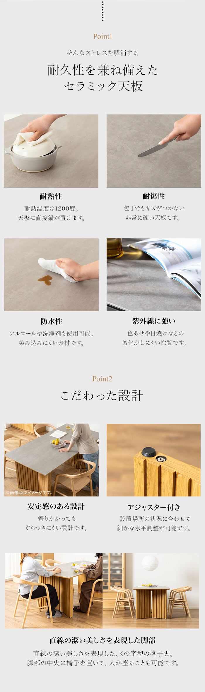天板には熱や傷に強く、汚れが染み込みにくい高品質なセラミック素材を贅沢に使用しています。