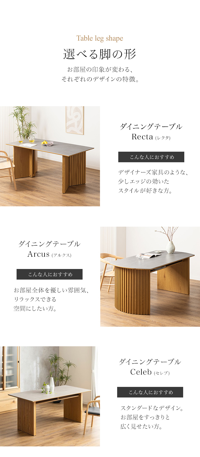 脚元にゆとりのある設計で、来客時やキッズチェアの増設などにお使いいただけます。