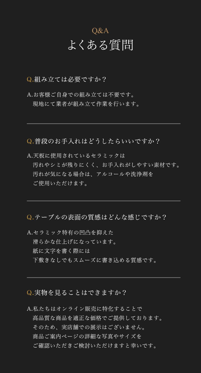 天板はセラミックとMDFを組み合わせた強固な二重構造になっており、優れた耐荷重と耐久性を誇ります。