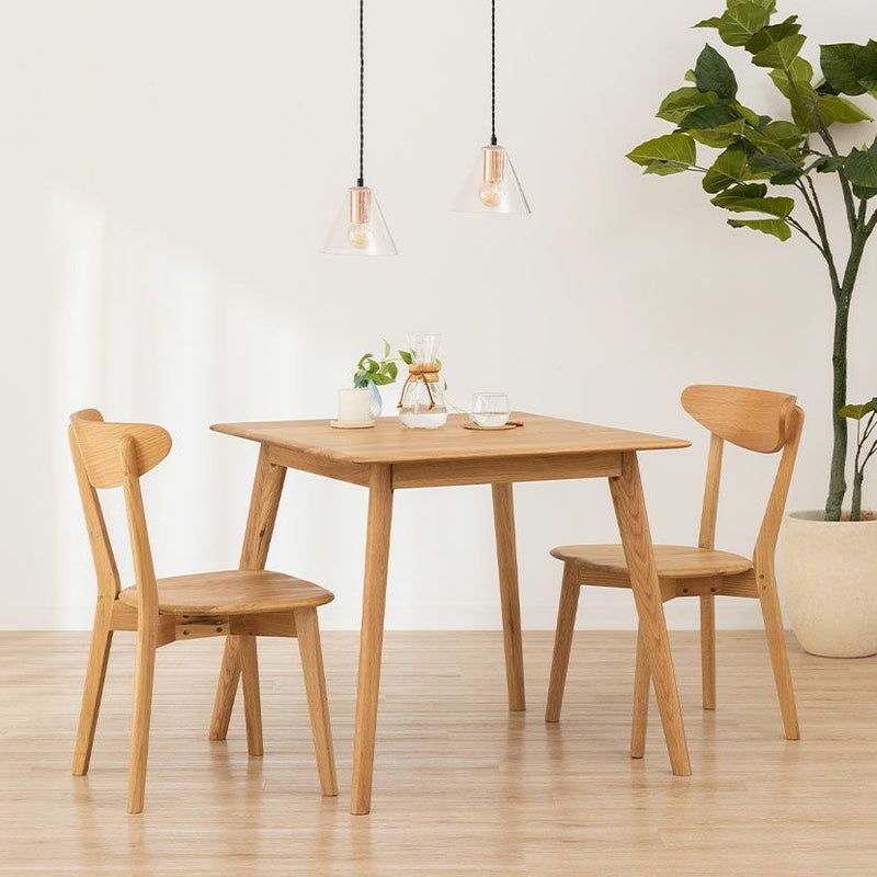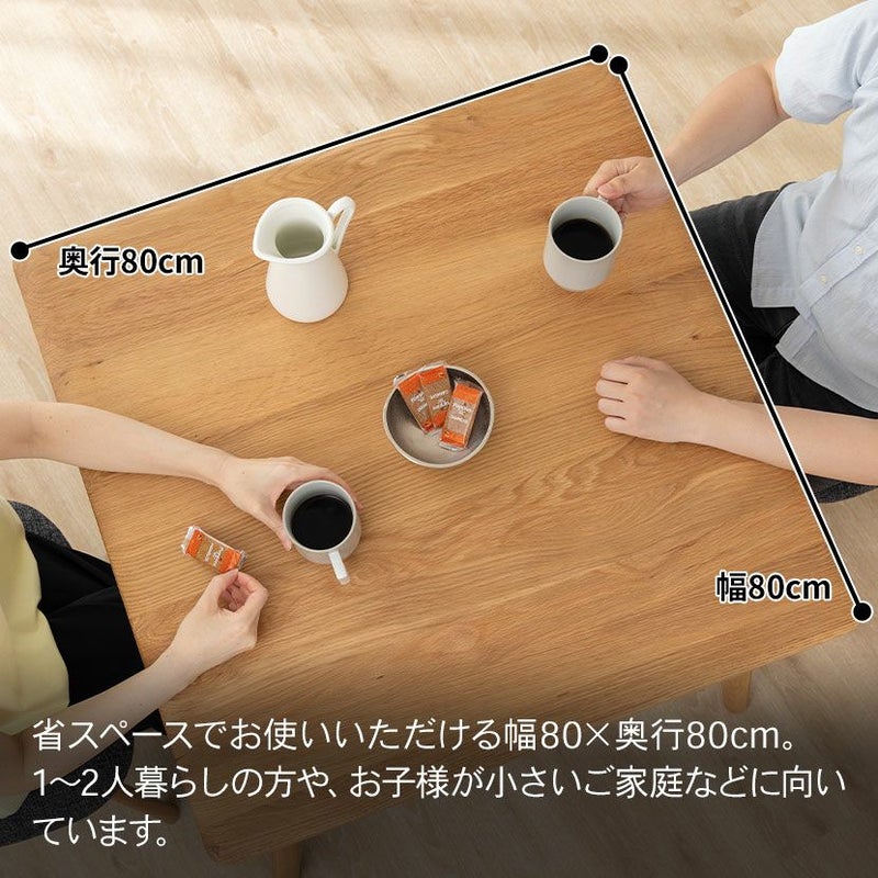 幅80cm 木製 ダイニングテーブル 正方形 アジャスター付き ホワイトオーク 無垢材 天然木 食卓セット 2人掛け テーブル コンパクト 北欧 カフェ風 ナチュラル