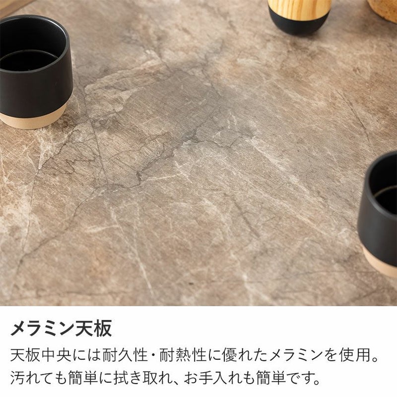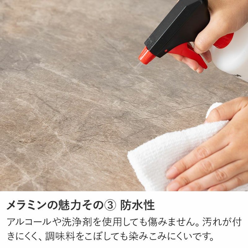 天板中央には耐久性・耐熱性に優れたメラミンを使用。汚れても簡単に拭き取れ、お手入れも簡単です。