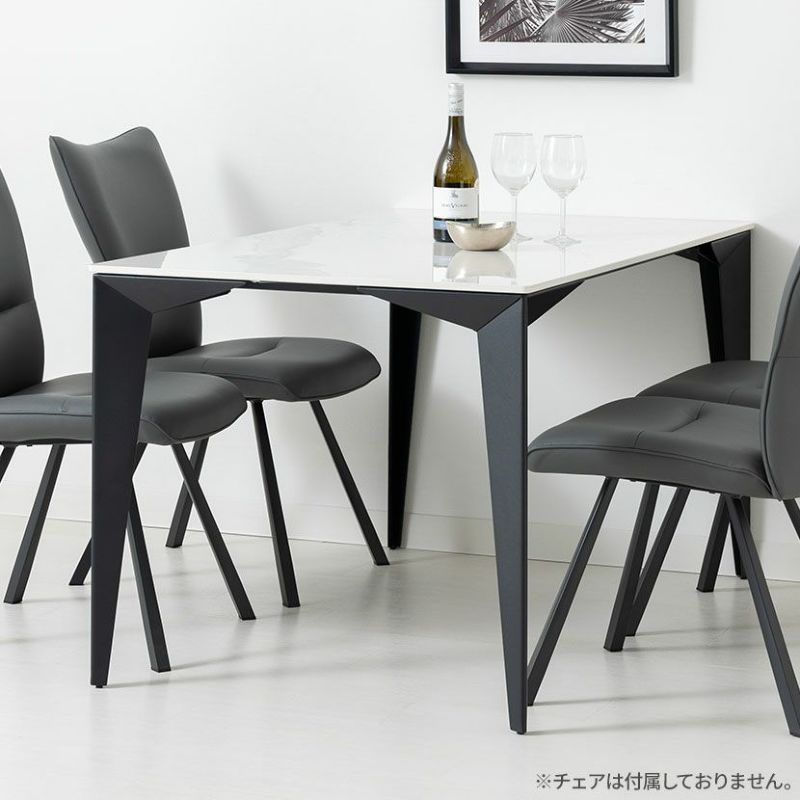立体感のある特徴的なデザインのスチール脚とセラミック天板を組みあわせたモダンなダイニングテーブル。●<ポイント>