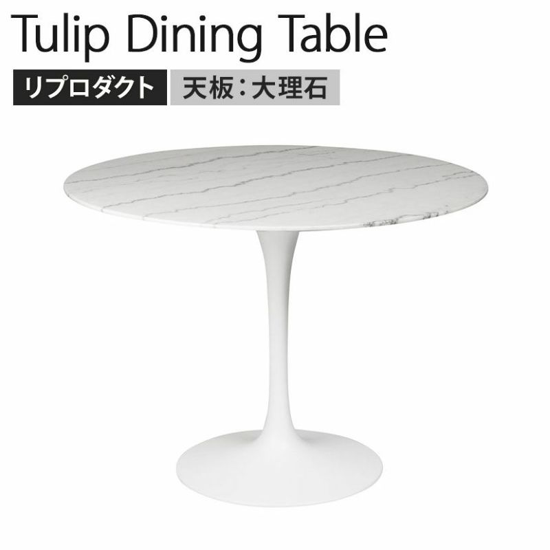 【設置無料】幅100cm チューリップダイニングテーブル エーロ・サーリネン リプロダクト マーブル 天板:大理石 脚:ホワイト 大理石天板 テーブル ダイニングテーブル モダン