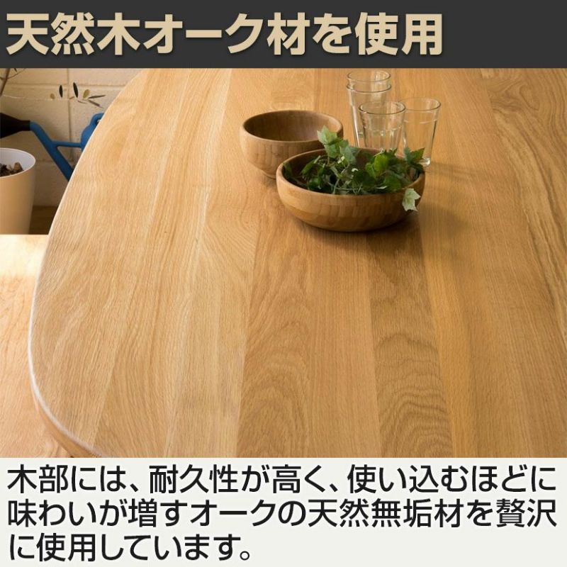 ・全てオーク無垢材を使用した贅沢なダイニングテーブル。オーク材は耐久性と美しい木目が特徴で、自然な風合いが人気の素材です。