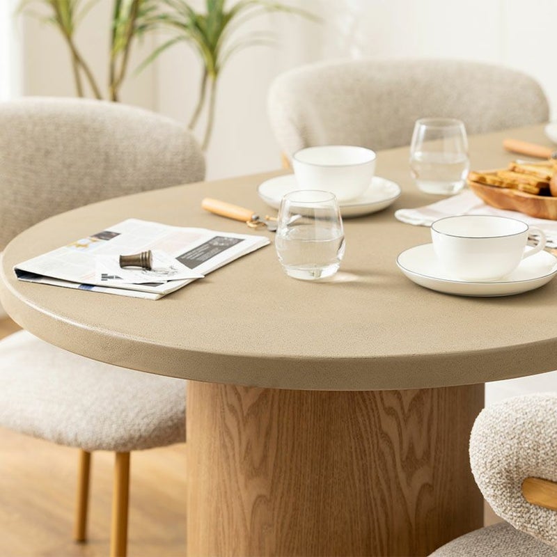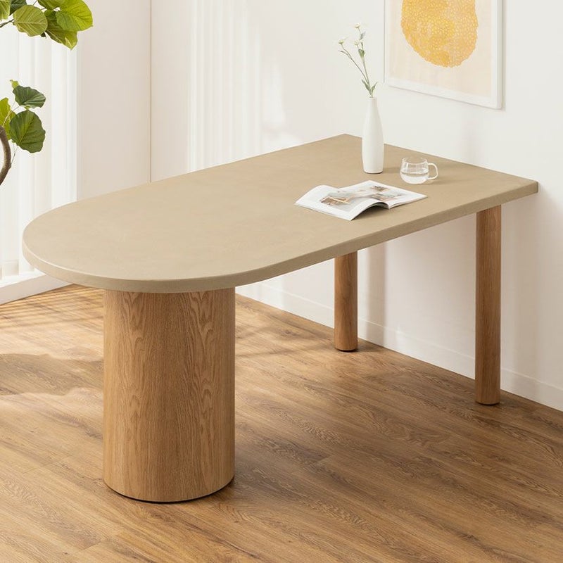 【設置無料】幅160cm 変形 半円 ダイニングテーブル モルタル風 LENAS コンクリート調 木脚 北欧モダン テーブル 4人 食卓テーブル おしゃれ ナチュラルモダン 韓国インテリア風 グレージュ