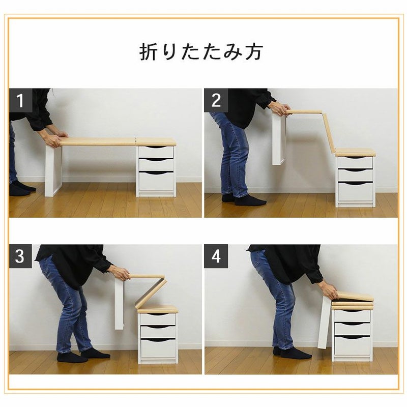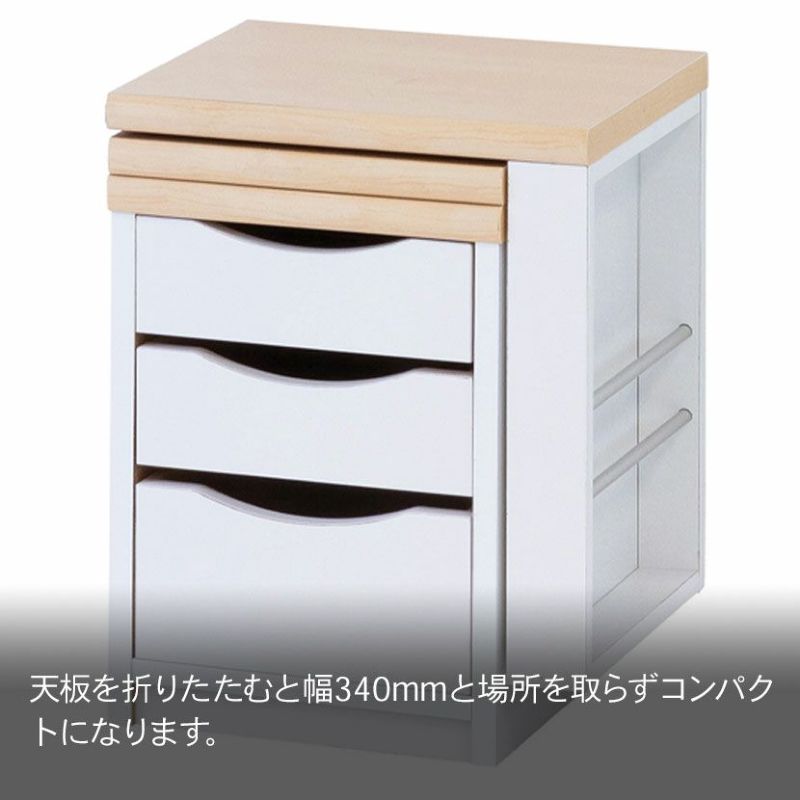●天板を折りたたむと幅340mmと場所を取らずコンパクトになります。