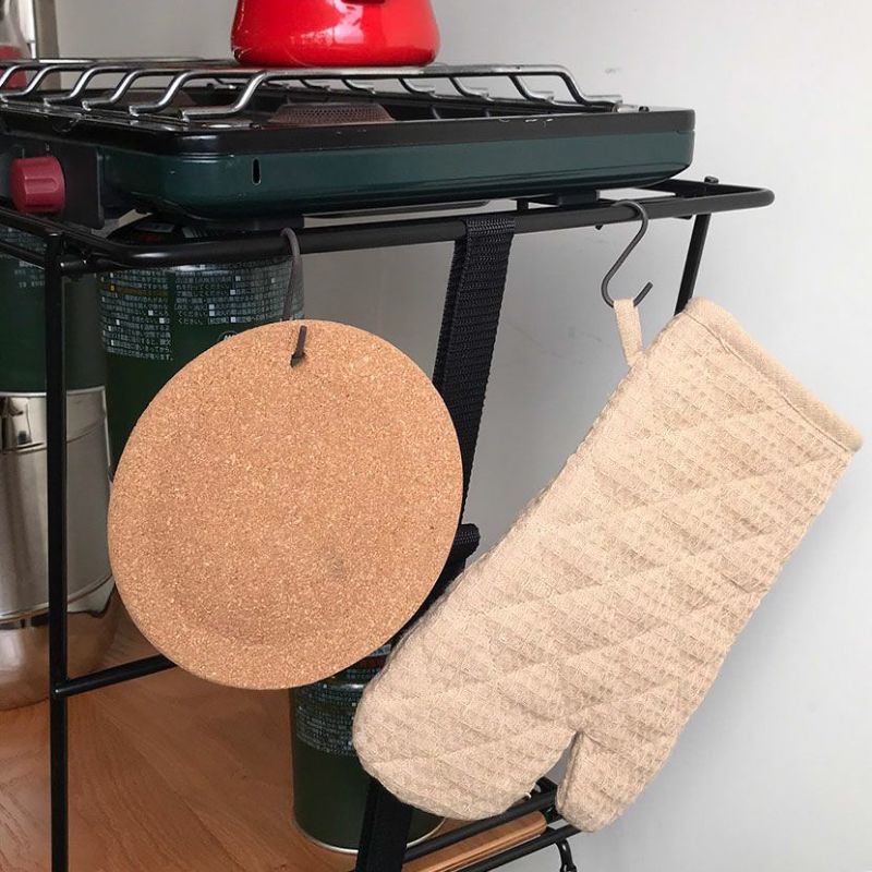 ●天板周りの枠には、フライ返しやお玉、シェラカップなどの調理器具をハンギングできます。