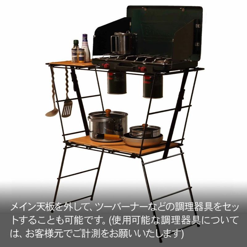 ●メイン天板を外して、ツーバーナーなどの調理器具をセットすることも可能です。(使用可能な調理器具については、お客様元でご計測をお願いいたします)