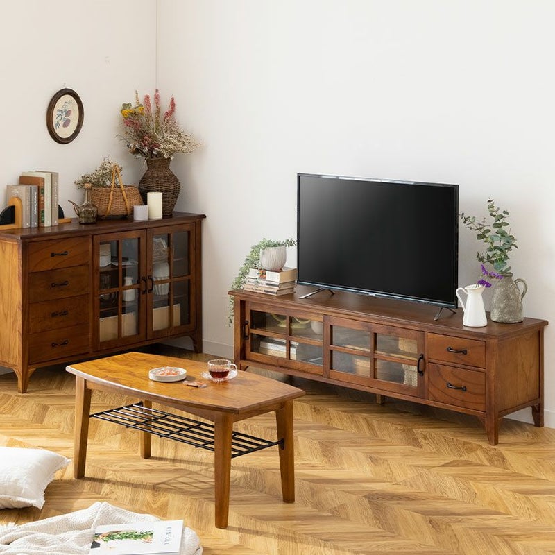 味わい深い天然木ならではの美しい木目や、ヴィンテージ感のある木の風合いがお部屋に高級感を与えます。高級感がありながらも、暮らしに馴染みやすいやさしいデザインが人気のシリーズ商品です。