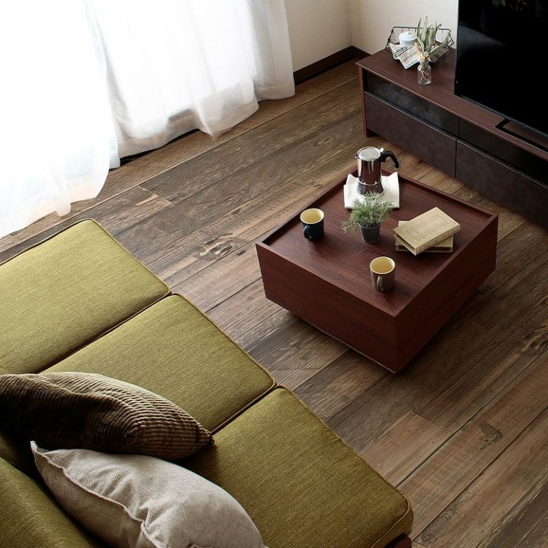 上からかぶせるだけでオットマンを収納できる、ボックス型のスクエアテーブル。