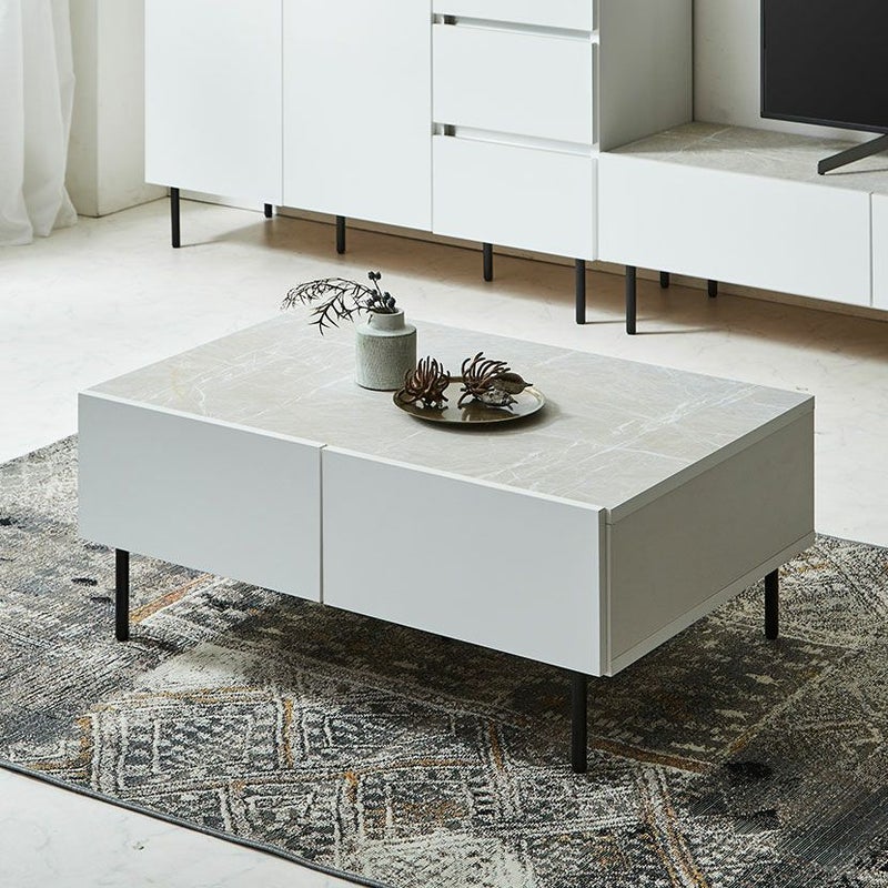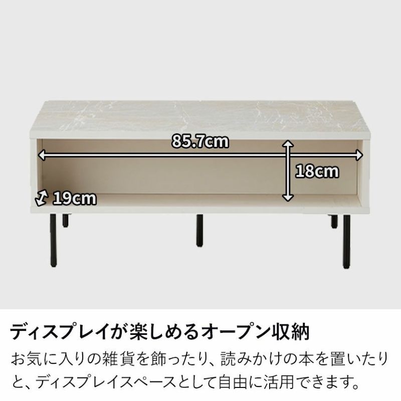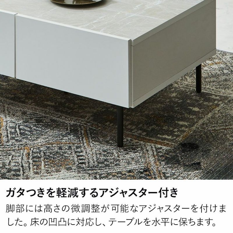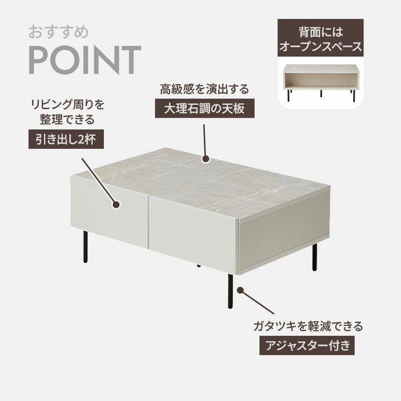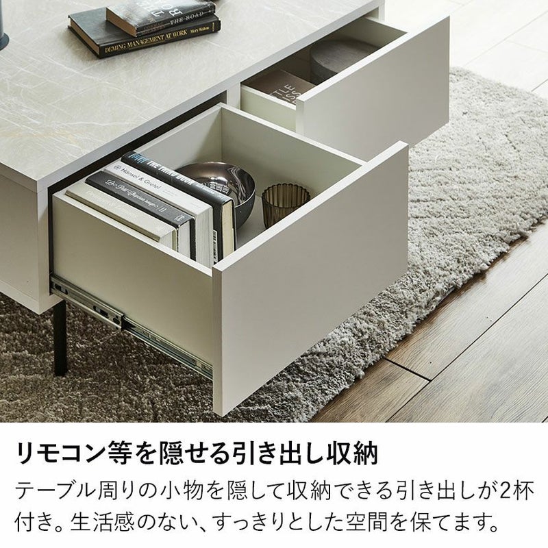 テーブル周りで散らかりがちなリモコンや雑誌、小物類をすっきりと片付けられる引き出しが2杯付いています。