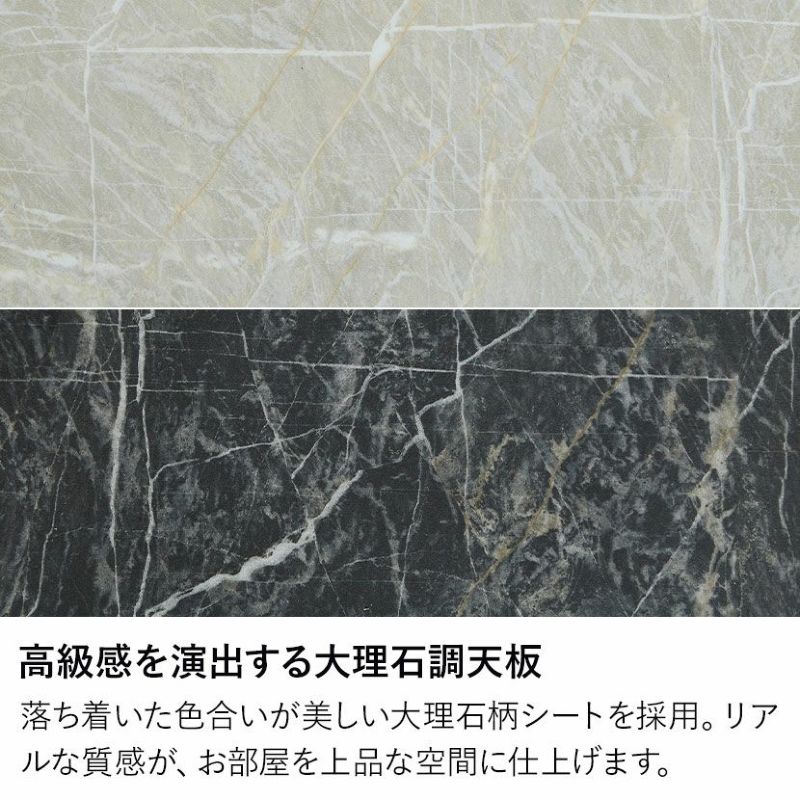 天板には、落ち着いた色合いが美しい大理石柄のシートを採用しています。
