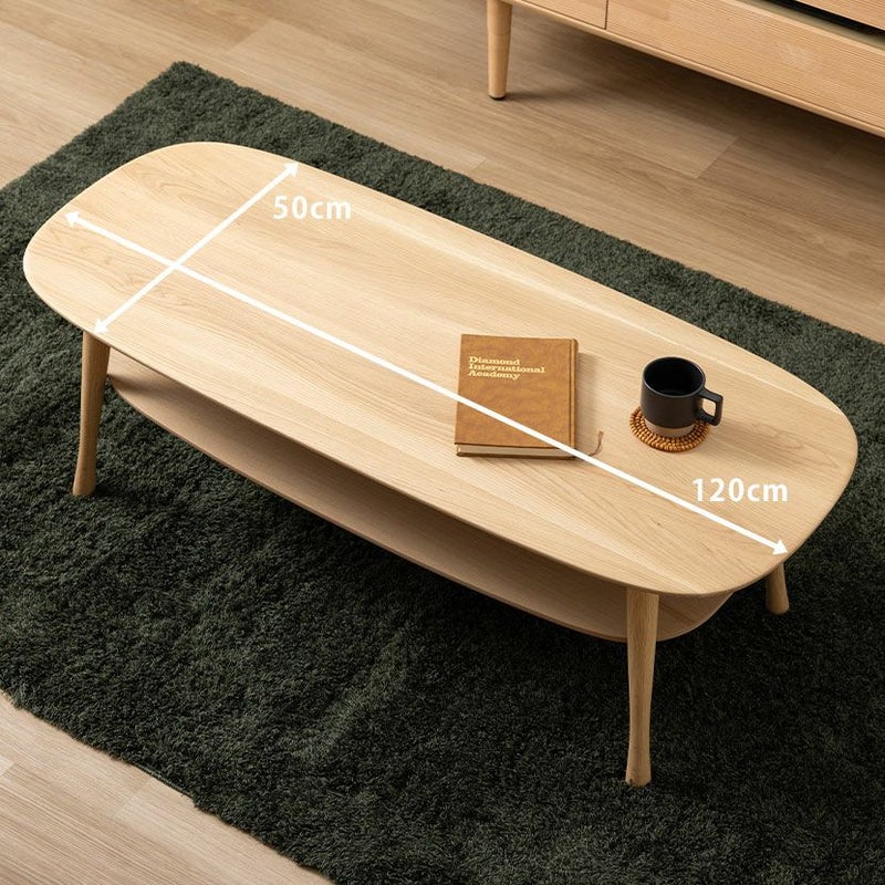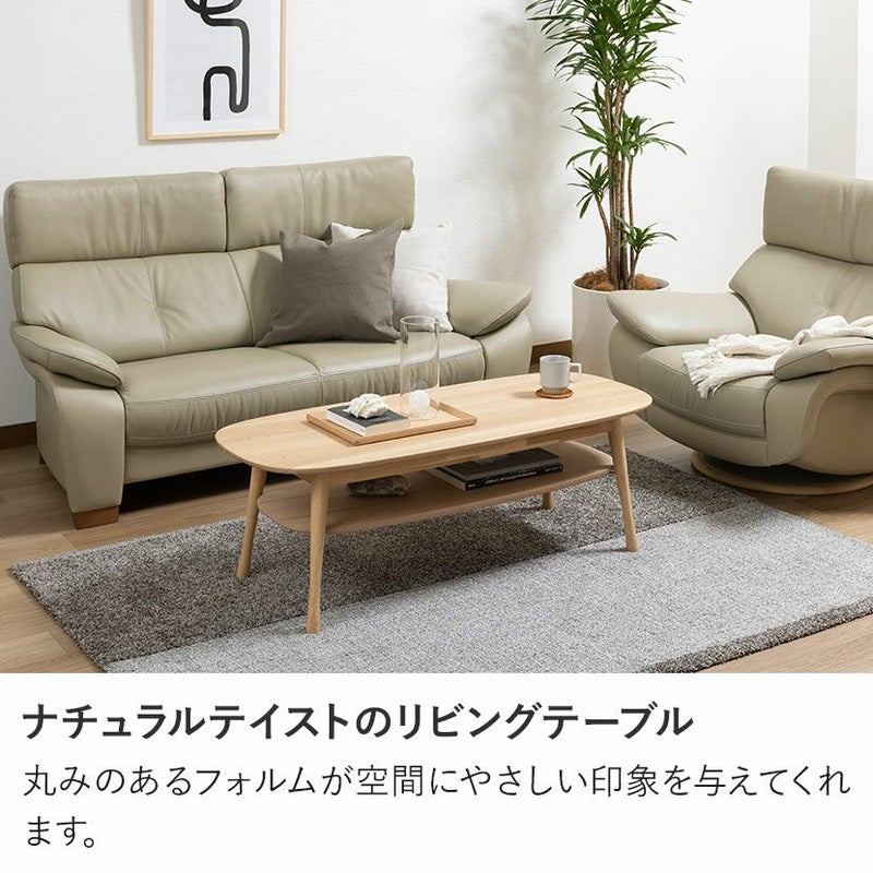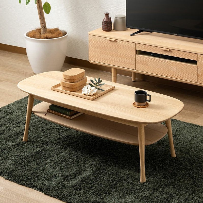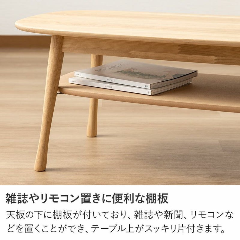 天板の下に棚板が付いており、雑誌や新聞、リモコンなどを置くことができ、テーブル上がスッキリ片付きます。