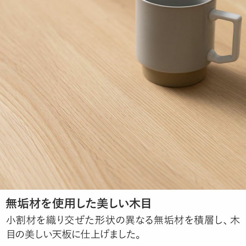 小割材を織り交ぜた形状の異なる無垢材を積層し、木目の美しい天板に仕上げました。