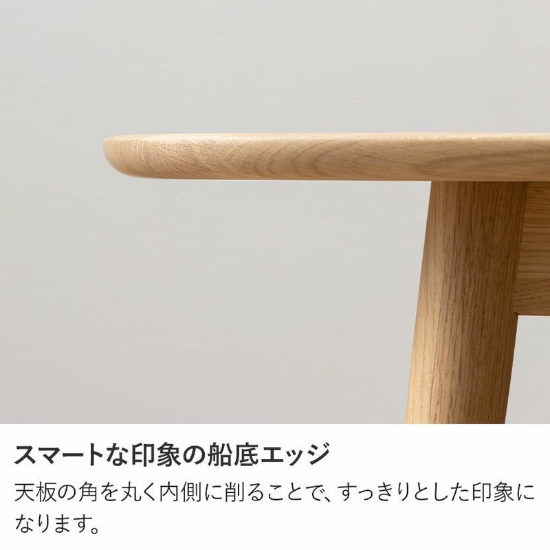 テーブルの脚を直線ではなく、なだらかなラインに加工することで、やさしく温かみのある印象です。