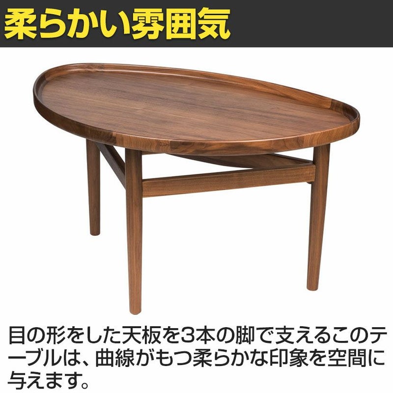 幅90cm Eye テーブル フィン・ユール リプロダクト スモール ウォールナット 3本脚 曲線 センターテーブル リビングテーブル ローテーブル