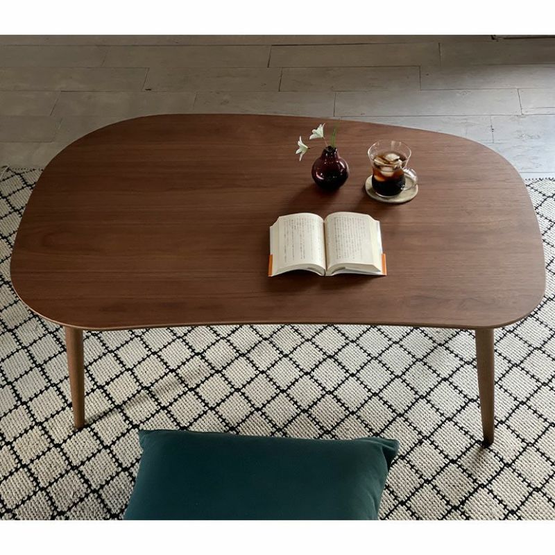 豆型天板の優しいフォルムが特徴のこたつテーブル。