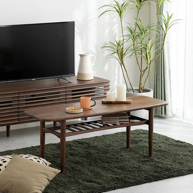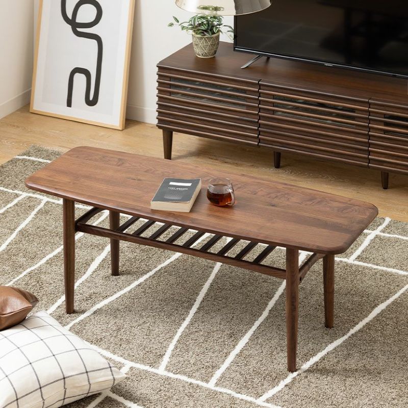 ウォールナット無垢材ふんだんに使用したリビングテーブル。