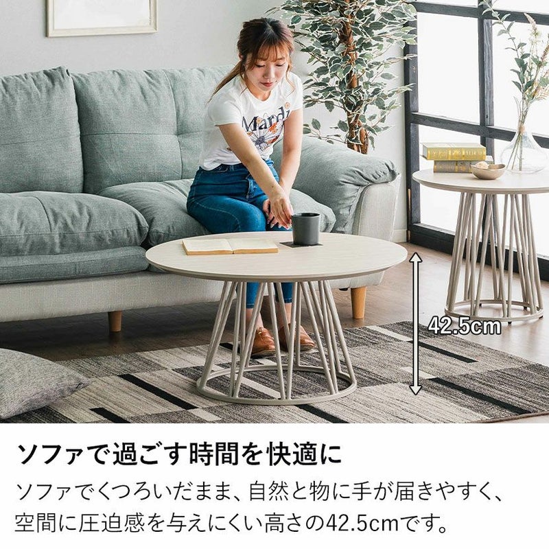 直径80cmの天板は、ノートパソコンを広げて作業したり、食事をしたりするのにも十分な広さです。