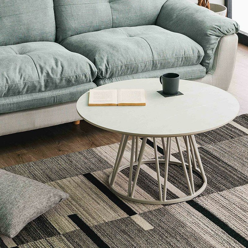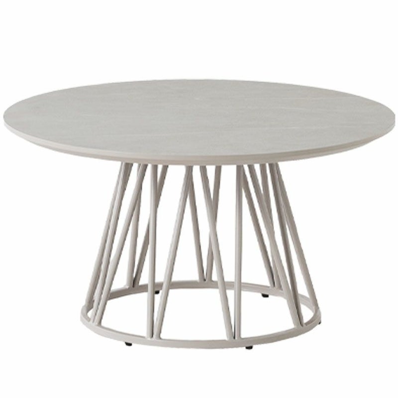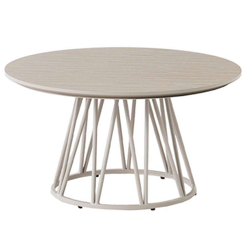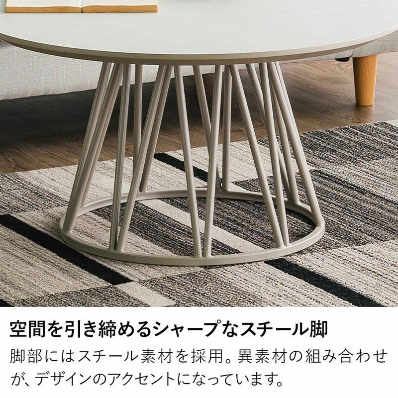 細身のスチール脚が、円形天板のやわらかな印象を引き締め、モダンな雰囲気を演出します。