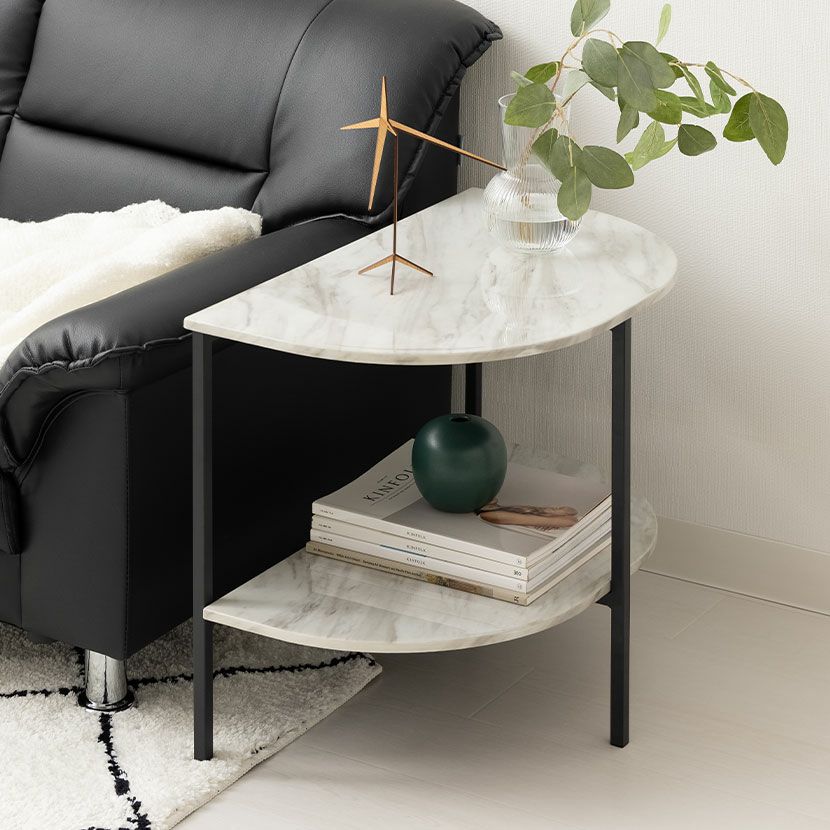 他の画像を見る 幅60cm サイドテーブル 棚付き 大理石柄 スチール脚 半円 リビングテーブル ナイトテーブル コーヒーテーブル ローテーブル おしゃれ モダン 白 ホワイト ブラウン 送料無料 送料無料 ¥ 12,590 税込 カートに入れる