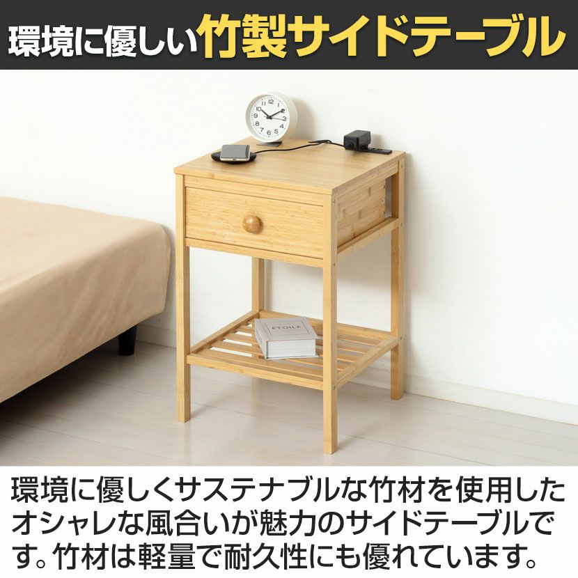 他の画像を見る 幅40cm サイドテーブル Bamboo コンセント2口付き 竹材 SDGs 引き出し 小物収納 ソファテーブル ナイトテーブル リビング 寝室 送料無料 送料無料 ¥ 12,200 税込 カートに入れる