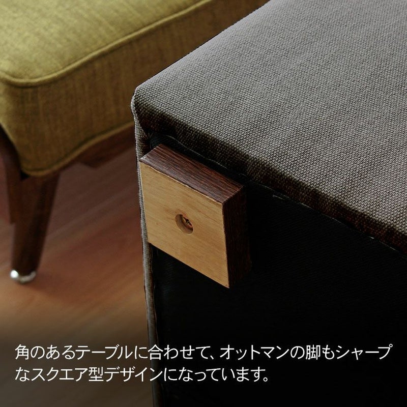 ●角のあるテーブルに合わせて、オットマンの脚もシャープなスクエア型デザインになっています。