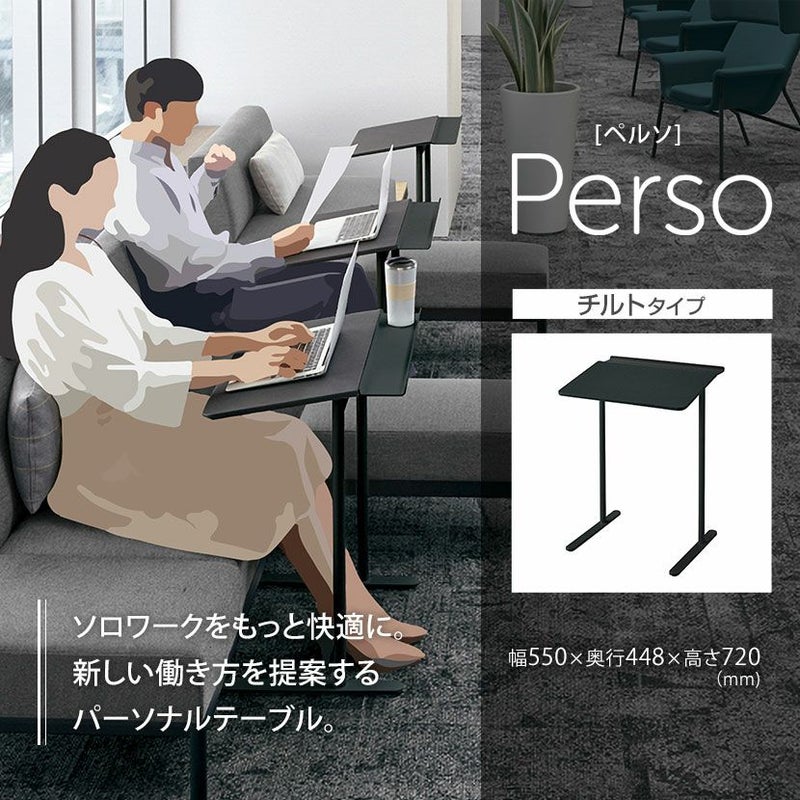 【設置無料】幅55cm ソファテーブル ペルソ Preso チルトタイプ 高さ72cm ブラック脚 1人用テーブル 傾斜天板 ポリウレタン系レザー天板 LT-450TLE6AVAE6 コクヨ
