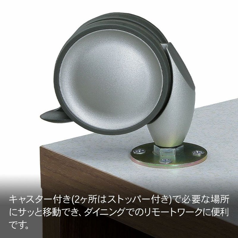 ●キャスター付き(2ヶ所はストッパー付き)で必要な場所にサッと移動でき、ダイニングでのリモートワークに便利です。