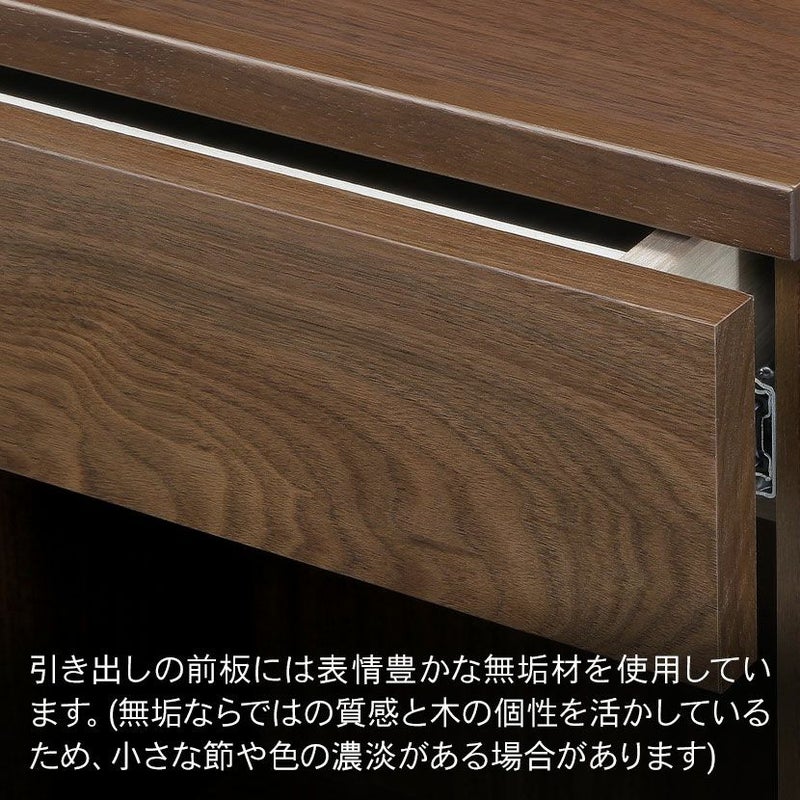 ●引き出しの前板には表情豊かな無垢材を使用しています。(※無垢ならではの質感と木の個性を活かしているため、小さな節や色の濃淡がある場合があります)
