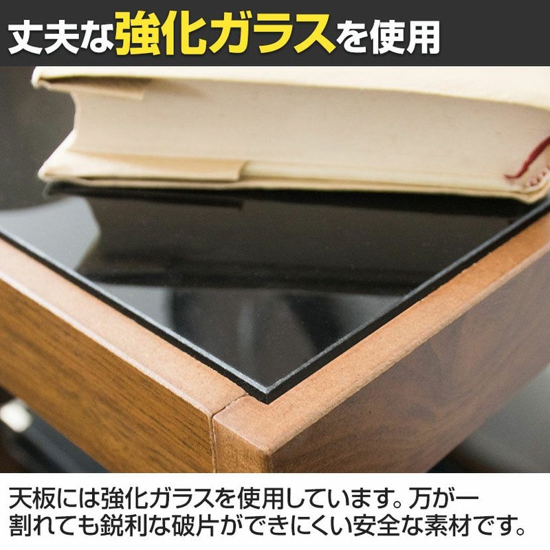 ・天板のガラスは強化ガラスを使用しています。普通のガラスより丈夫で、万が一割れても粒状になり鋭利な破片ができにくい安全な素材です。
