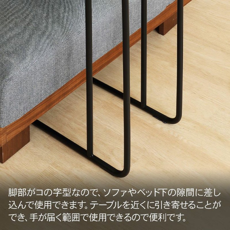 ソファやベッド下に差し込んで使用できる、コの字型デザインが特徴です。