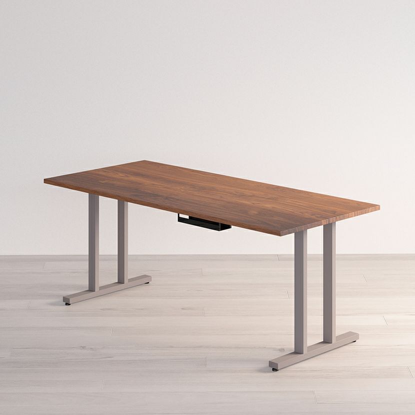 幅141~180cm サイズオーダーデスク Sizeno(シゼノ) パソコンデスク ウォールナット 無垢材 木製 T字脚 スチール脚 天然木 パソコンデスク 配線穴 オフィスデスク テレワークデスク 勉強机 おしゃれ ウッディモダン 書斎 ダークブラウン