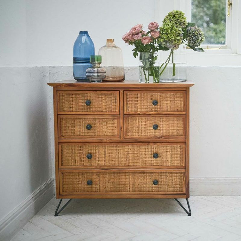ラタン(籐)と天然木を使用した温かみのあるデザインが特徴。