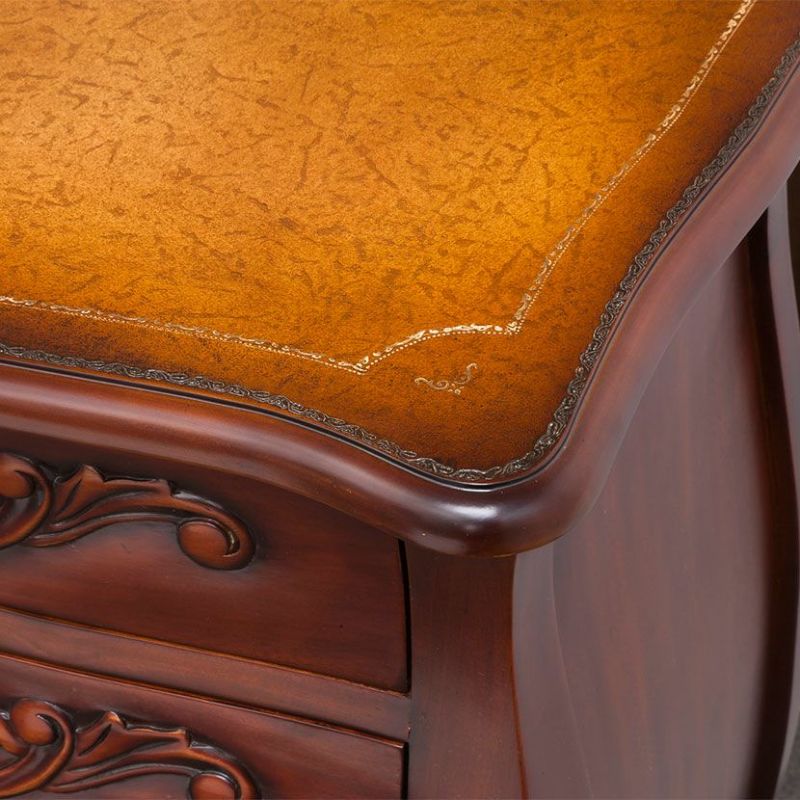 ヨーロピアンテイストが優雅に空間を彩ります。天板は曲線が美しいデザインで、レザー調の特殊な仕上げをしています。