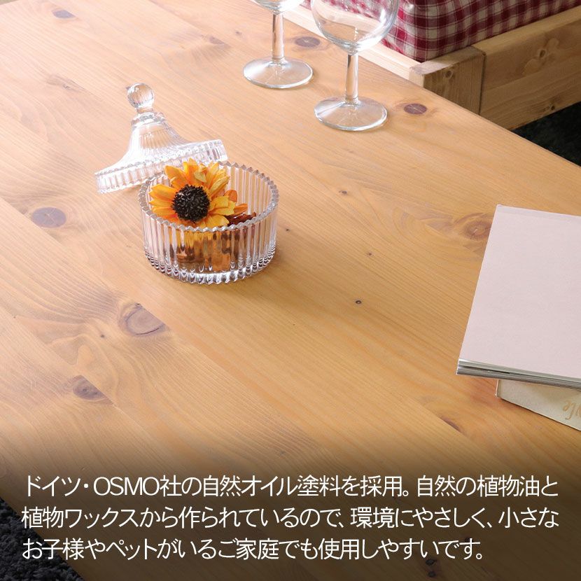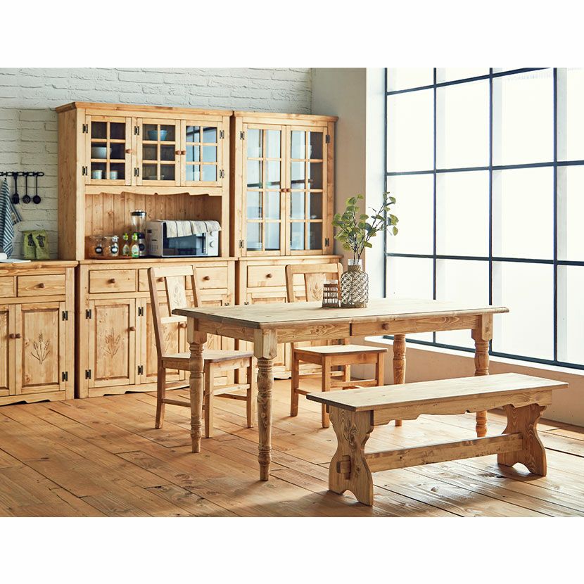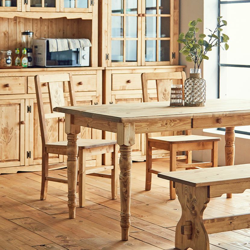 カントリーテイストとは、「田舎暮らし」をモチーフとしたものです。田舎暮らしがイメージできるように、木製の家具をたくさん使い、自然に囲まれた暮らしを印象付けるようなインテリアにすることがポイントになります。 家具の材質はパイン材やオーク材で、木の質感を味わう自然塗装の家具や、昔ながらのペイントを施したペイント塗装の家具を用います。また、カントリーテイストに用いる家具は、真新しいイメージのものではなく、汚れや傷が味わいとなっているような、使い古したイメージのものを使うとしっくりきます。