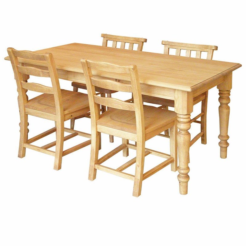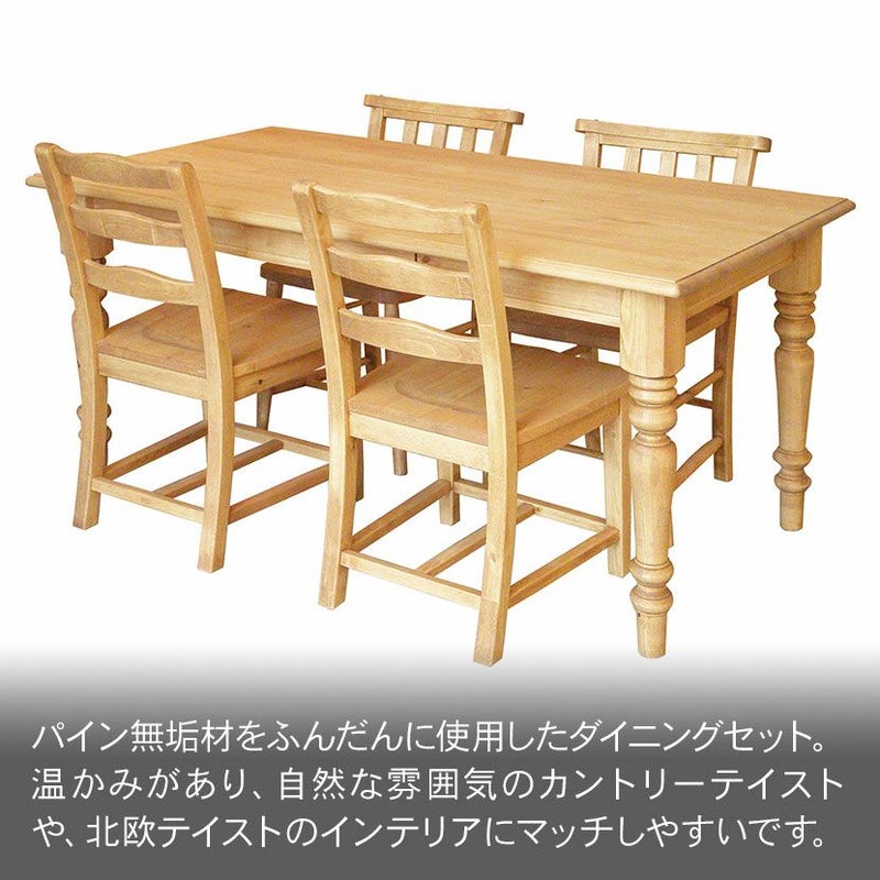 パイン無垢材をふんだんに使用した、カントリーテイストのダイニングセット。